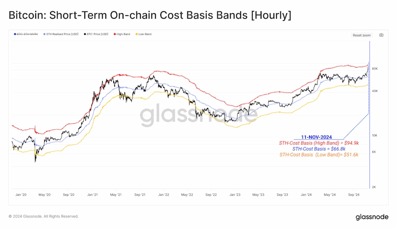 Upper statistical bands of acquisition cost indicate a key level at USD 94,900. "Demand at cost levels above USD 87,900 remains strong," according to a Glassnode report.