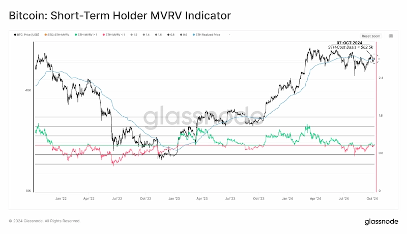 Baza kosztowa posiadaczy krótkoterminowych (STH), wynosząca obecnie 62 500 USD, jest następnym poziomem, który należy obserwować. Ten punkt cenowy reprezentuje średnią bazę kosztową dla niedawnych nabywców i może znacząco wpłynąć na krótkoterminowe zmiany cen. Zdolność rynku do odzyskania i utrzymania się powyżej tego poziomu może być byczym sygnałem, wskazującym na silny popyt ze strony nowych uczestników.