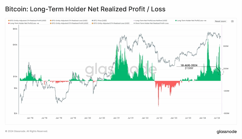 Jednym z najbardziej uderzających aspektów obecnej dynamiki rynkowej jest niezłomne przekonanie co do dalszych wzrostów pokazywane przez długoterminowych posiadaczy (LTH). Ci inwestorzy konsekwentnie realizują zyski w wysokości około 138 mln dolarów dziennie, co wskazuje na pewną równowagę między podażą a popytem.